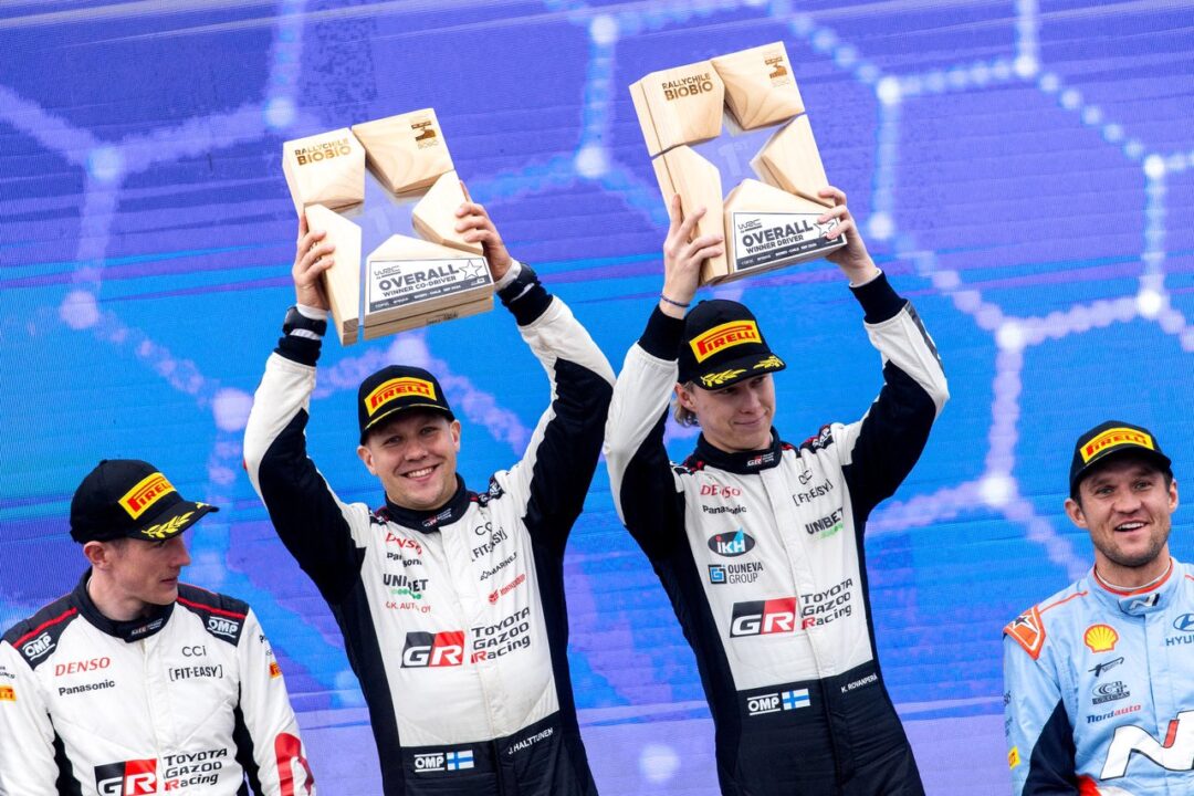 Foto de Portada: El copiloto Jonne Halttunen y Kalle Rovanperä celebrando el título del Rally Bíobio 2024, gentileza de WRC vía X (antes twitter)