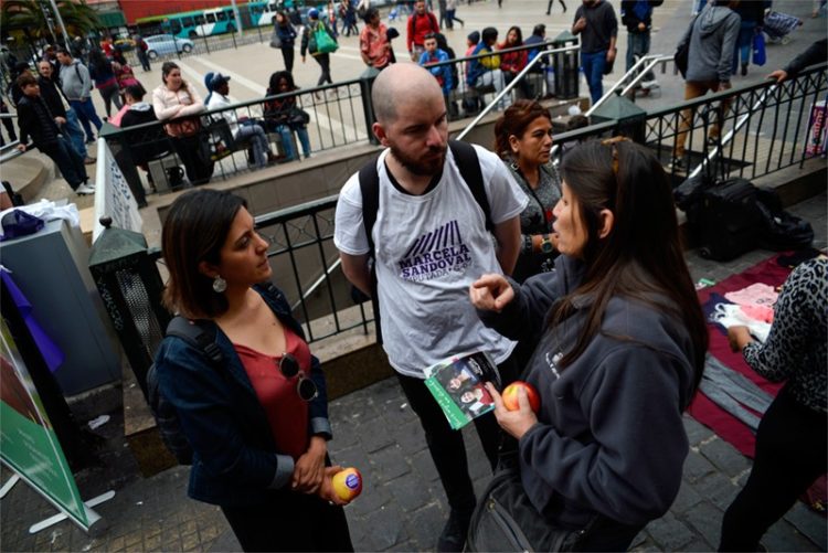 Con ese objetivo la ex secretaria general de Revolución Democrática y candidata a diputada por el distrito 8, Marcela Sandoval, junto al diputado Giorgio Jackson, llegaron hasta el frontis de la Estación Central.