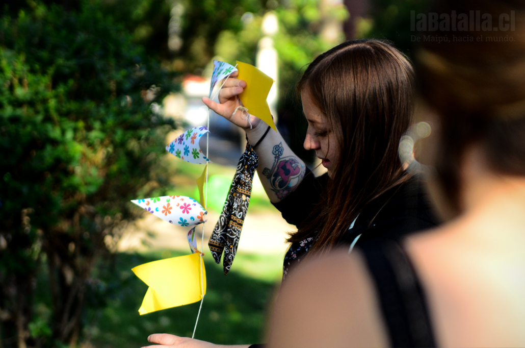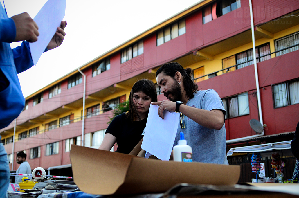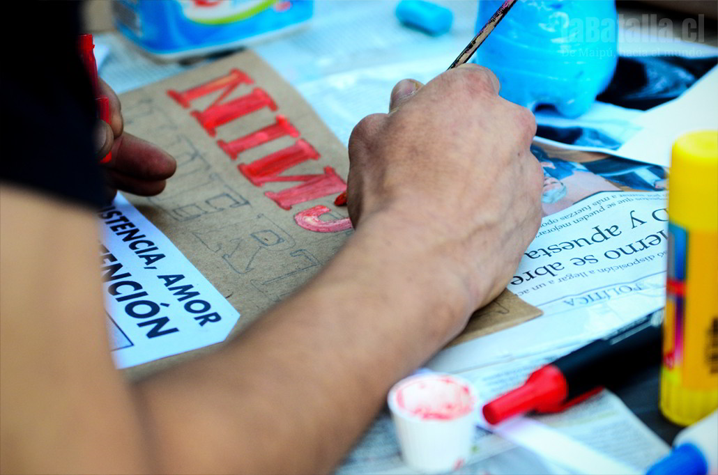 A un costado del escenario, niños, adultos, quien quisiera, podía elaborar un afiche con los materiales que se le proporcionaron. La idea era que el vecindario se expresara.