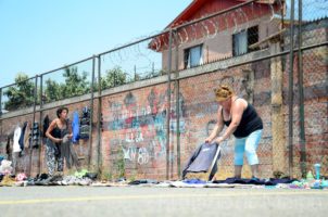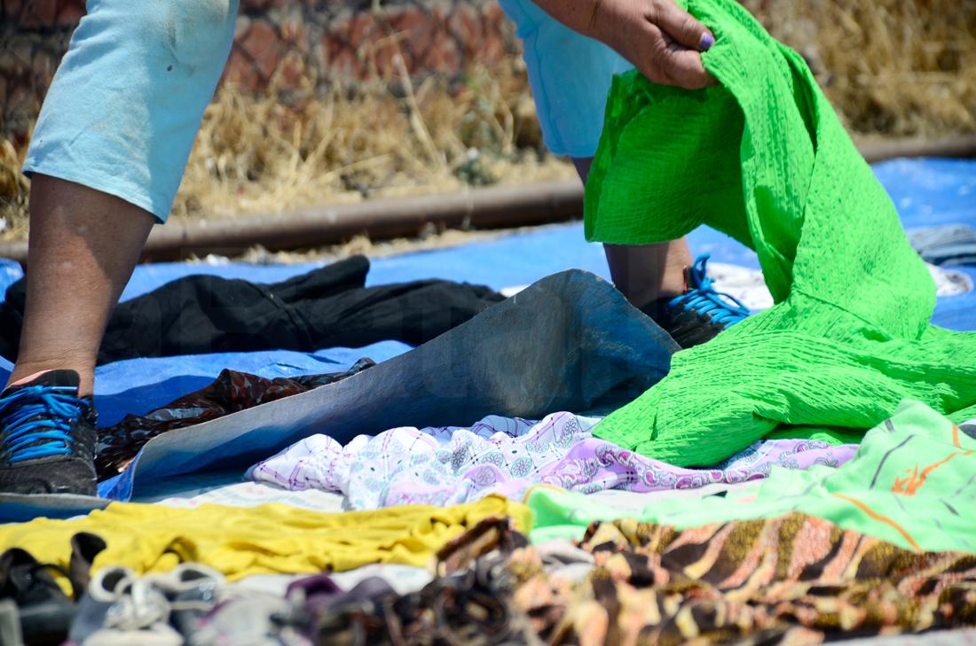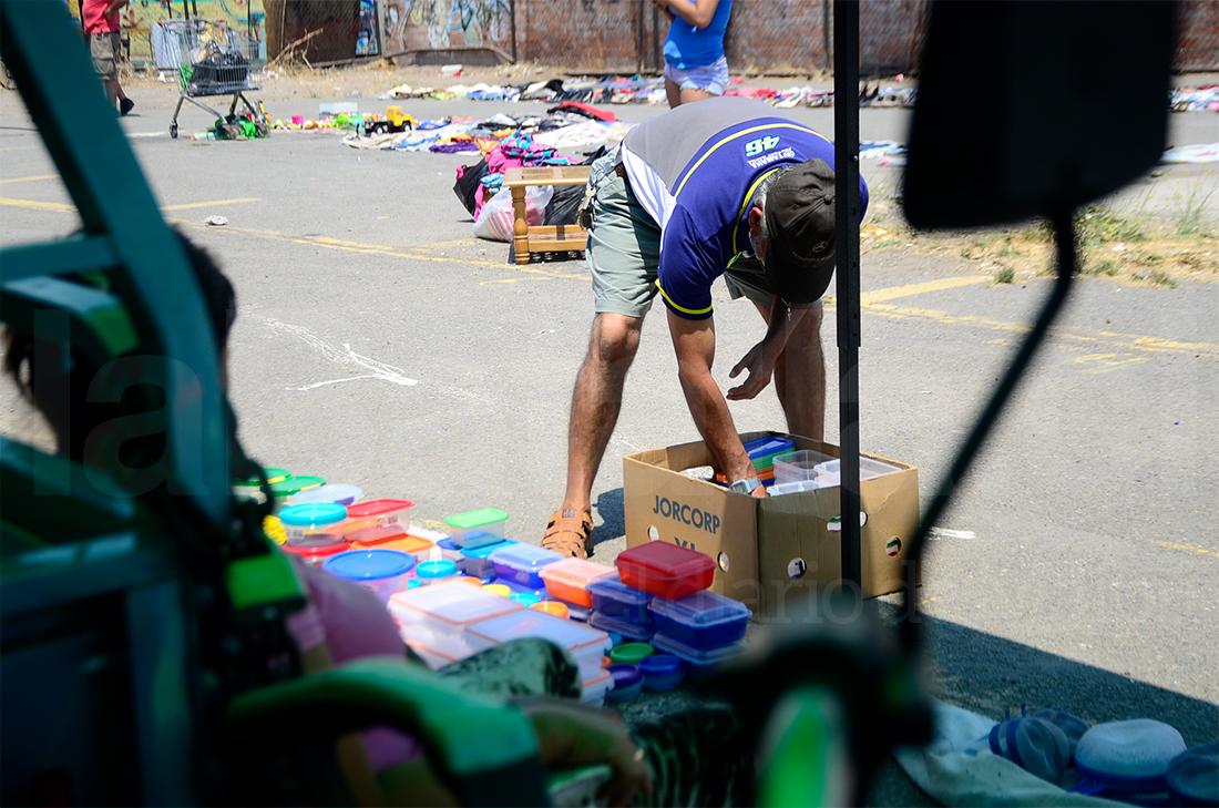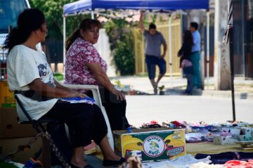 Cada cierto tiempo caminaban por la calle vecinos del sector que realizaban sus compras y que familiarmente se saludaban con los coleros. Cuando llegó Sergio, caballero con su piel roja debido a la exposición al sol, y con dificultades para hablar, me contó su historia: “yo mismo no puedo trabajar en otra cosa, por mi enfermedad que yo tengo, ¿a dónde me van a recibir así?, por eso yo necesito de esto”. Don Sergio luego me llevó a su puesto de ropa usada, ubicado en una cancha junto a otros coleros.