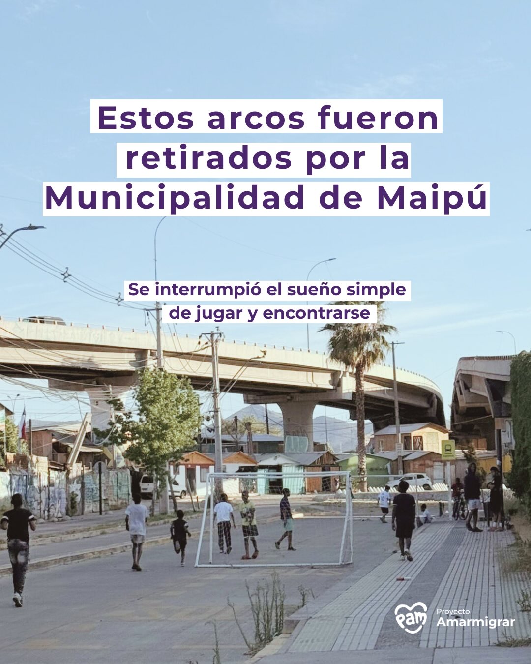 El retiro de dos arcos de fútbol instalados en avenida Pajaritos, a un lado del campamento Vicente Reyes, en Maipú, generó un desacuerdo entre la ONG Proyecto Amar Migrar y la Municipalidad de Maipú.