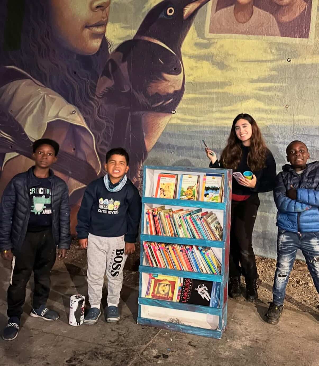 Letrero sobre la vereda. Imagen: Fundación Amar Migrar