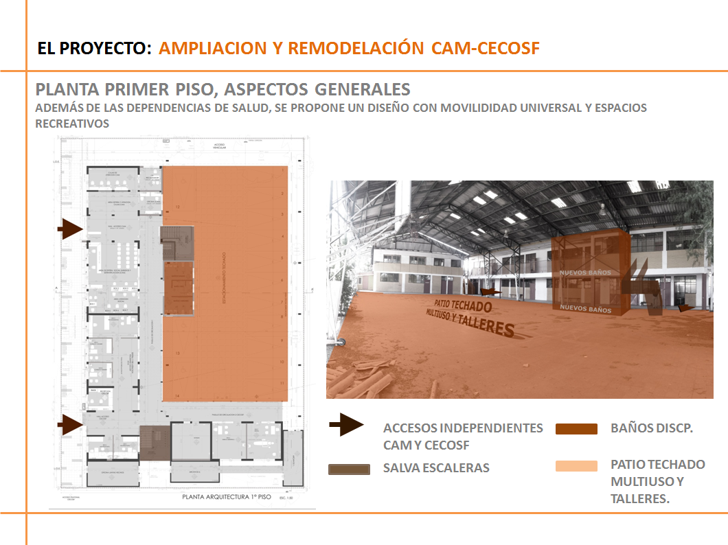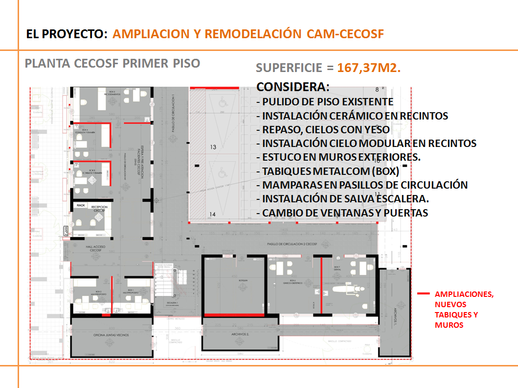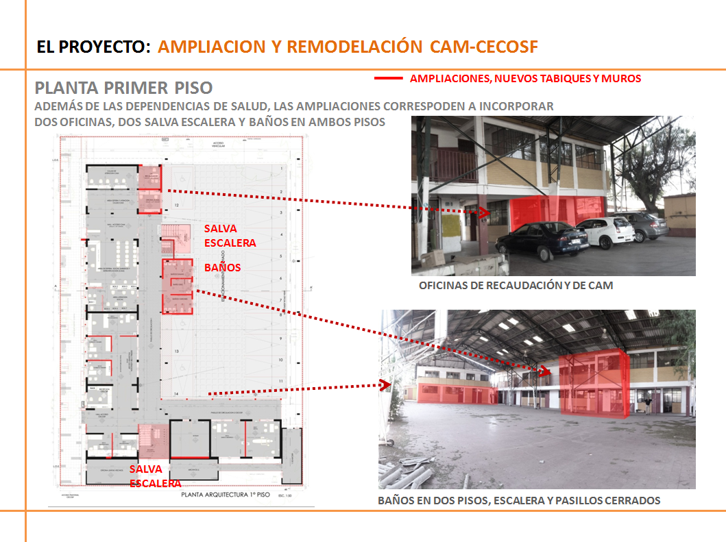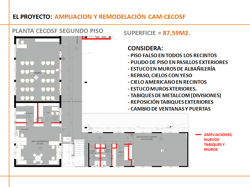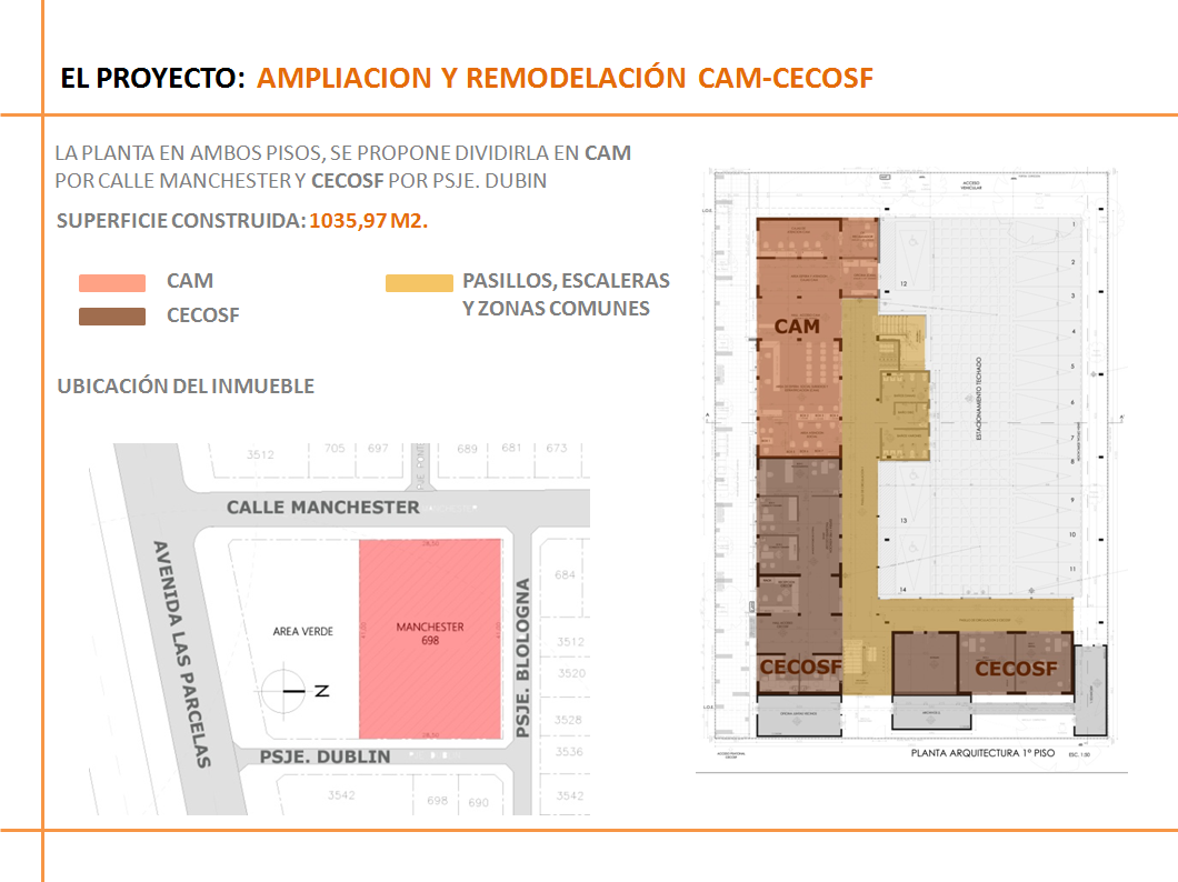 Los trabajos de habilitación y remodelación contemplan la división de la planta en ambos pisos, en CAM por calle Manchester y CECOSF por el Pasaje Dublín.