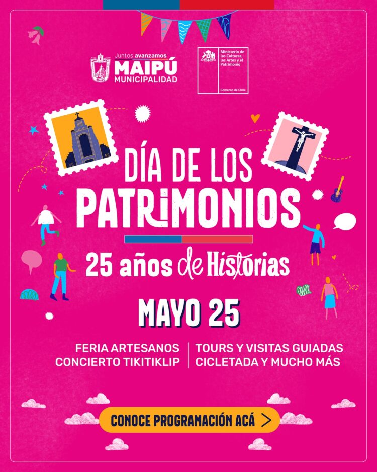 Este 25 de mayo, Maipú se llenará de vida a través del patrimonio comunal, con distintas actividades organizadas por el Municipio con motivo del Día de los Patrimonios.