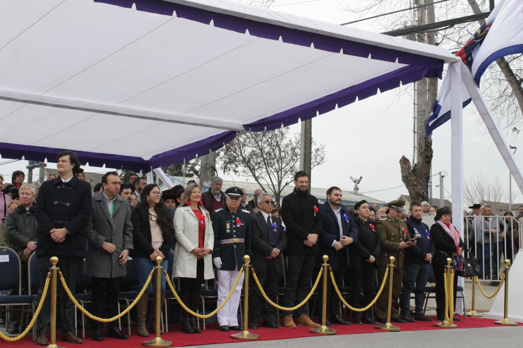 Con el encajonamiento de la banda de estudiantes de la Corporación Municipal de educación, comenzó la ceremonia oficial de celebración, que tuvo principalmente la intervención del alcalde de la comuna Tomás Vodanovic, que en parte de su saludo expresó: