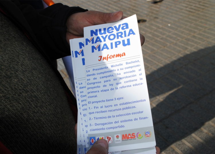 Militantes de diversos partidos que componen la Nueva Mayoría a nivel local realizaron el sábado 02 de agosto una jornada de difusión y defensa del proyecto de reforma educacional, impulsado por el gobierno de la presidenta Michelle Bachelet.