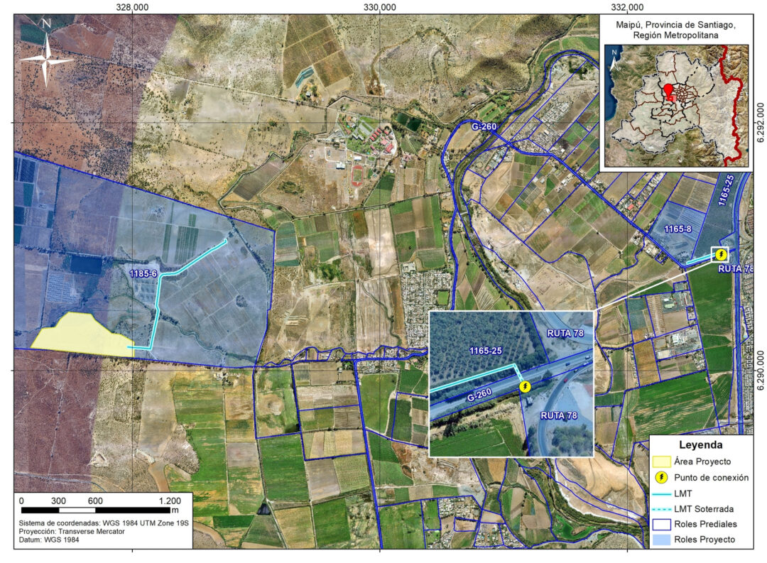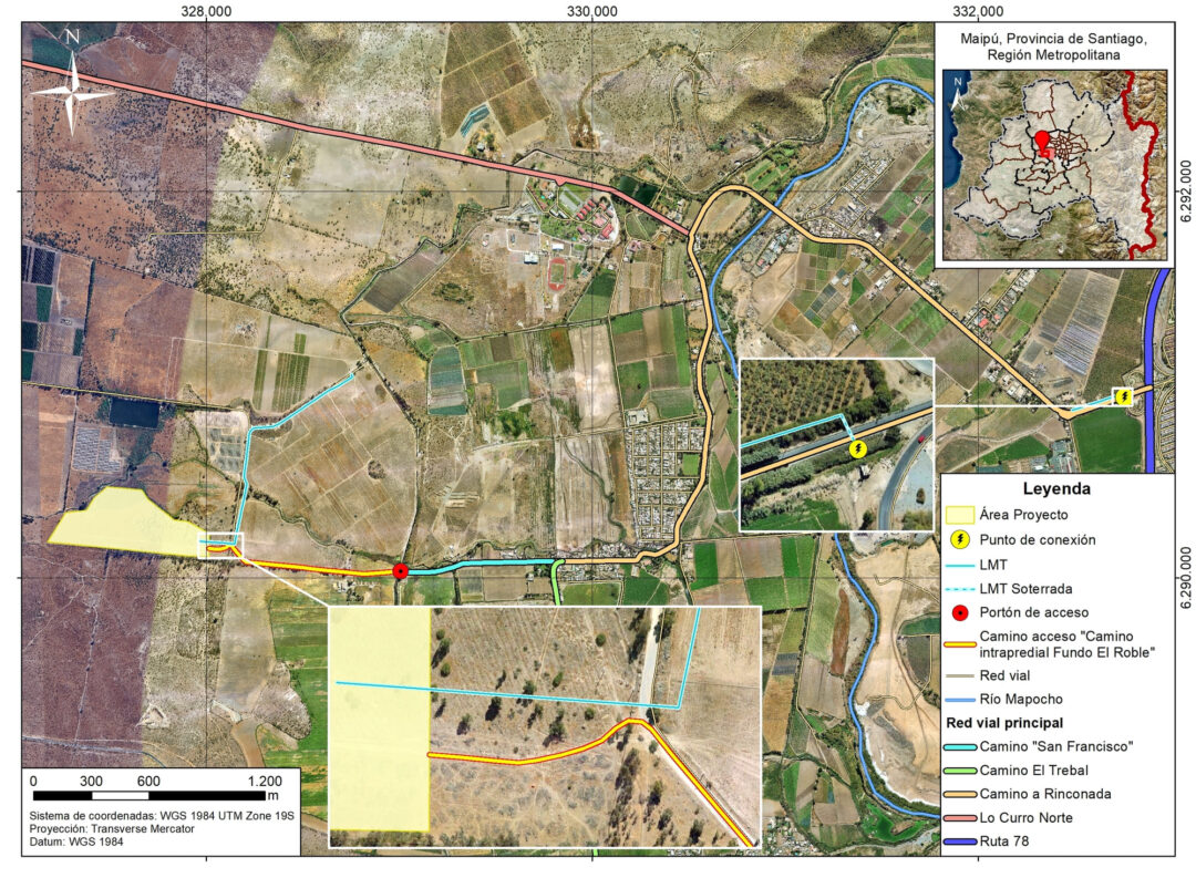 En la misma comuna de Maipú y a escasos metros de donde pretende instalarse la nueva planta, ya opera El Roble Solar, desarrollado por la empresa de raíces belgas Solcor Chile, una instalación que ocupa 5 hectáreas y cuenta con 8.323 paneles solares. Este proyecto inyecta directamente la energía generada a la red de distribución y tiene una producción estimada de 5.034 MWh anuales. Además, se estima que su funcionamiento permite un ahorro aproximado de 2.000 toneladas de CO2 al año.