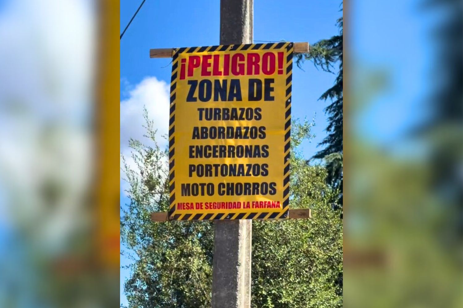 En distintos puntos del barrio La Farfana, en el sector norponiente de Maipú —entre Avenida Américo Vespucio y la Autopista del Sol— comenzaron a instalarse lienzos amarillos colgados en postes que advierten a peatones y conductores sobre la ocurrencia de delitos en el sector.