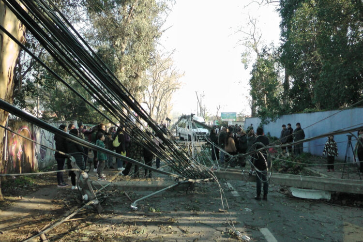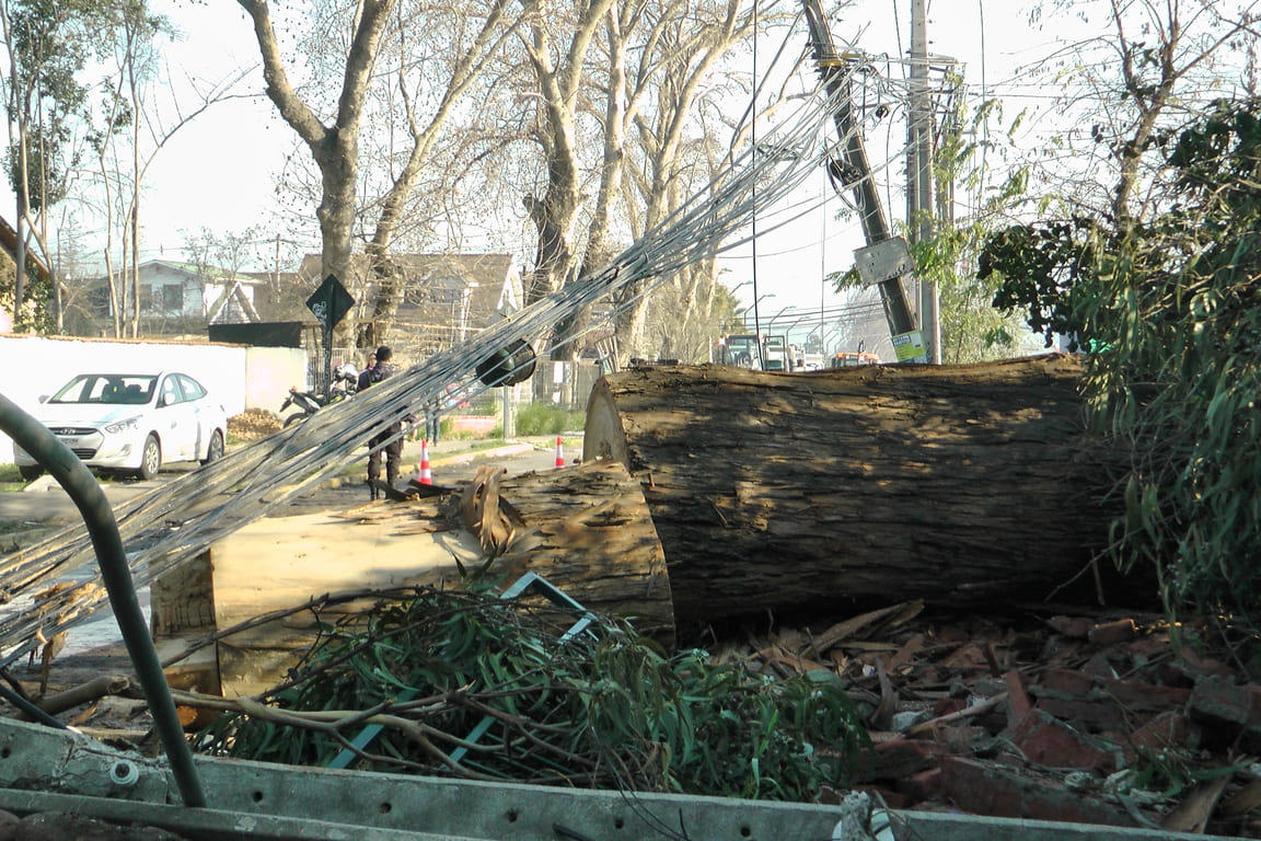 Un área de alrededor de 200 metros, desde la línea del ferrocarril hacia el Camino El Bosque, ha estado durante siete días inhabilitada producto de los árboles, postes y cableado eléctrico sobre esta calle o callejón en Maipú.