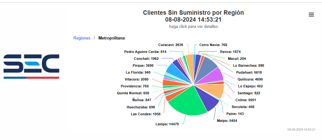 En Maipú aún hay 5.454 Clientes sin Luz, a una semana del temporal ocurrido la madrugada del viernes 2 de agosto. Fuente: SEC.