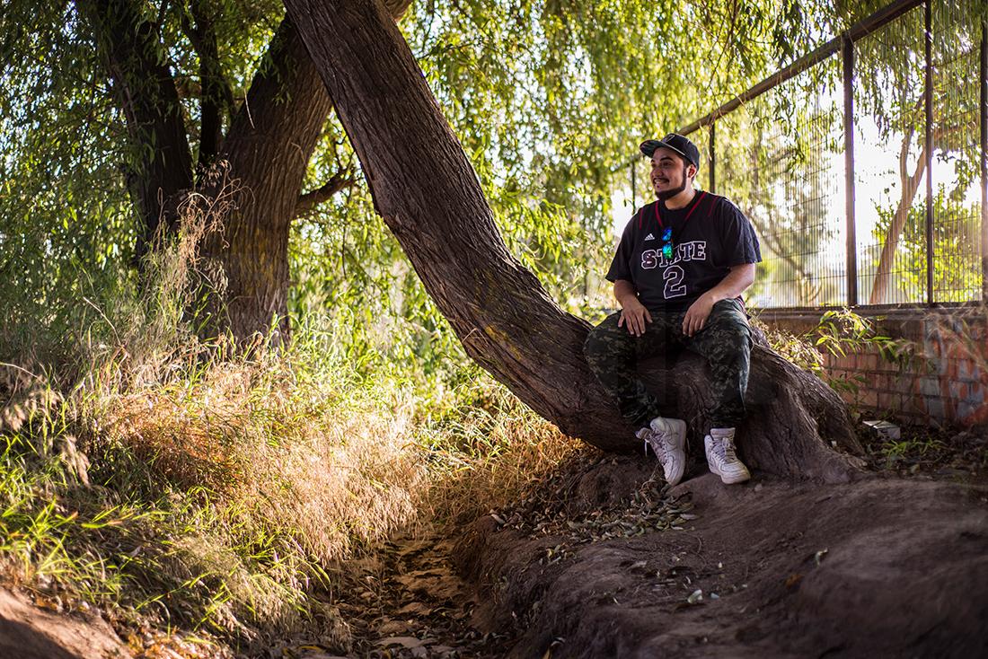 Entre los árboles se veía la reja divisoria, que en un tramo desaparecía y nos permitió pasar al otro lado, un lugar místico, que según recuerda, visita seguido con un grupo de amigos. Sobre todo en invierno se juntan a “rapear”.