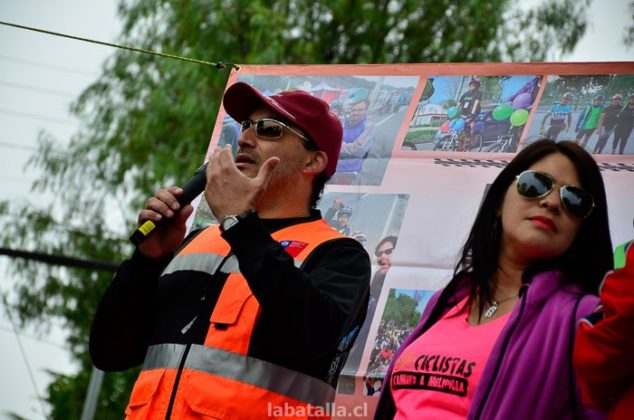 Aravena encabezó, junto al SEREMI de la Región Metropolitana, Fernando Gallegos, una comitiva del MOP que se apersonó en la entrada de la Ciudad Satélite, la mañana del domingo 13 de diciembre, para comunicar a las y los ciclistas congregados allí al inicio de la décima ciclomarcha por una ciclovía en Camino a Melipilla, la intención de construirla.