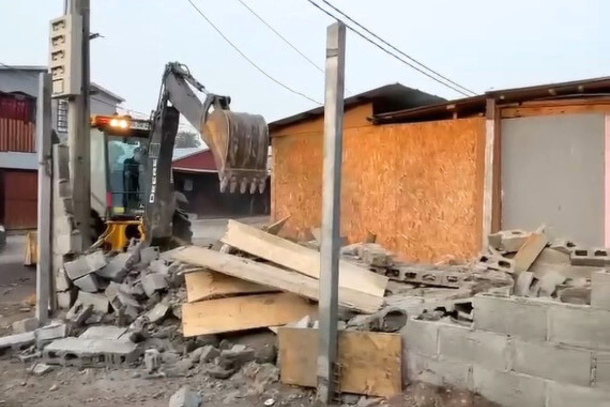 La demolición -realizada con la ayuda de una retroexcavadora y resguardo de seguridad municipal- forma parte de un plan de fiscalización municipal en el sector para evitar nuevas instalaciones ilegales.