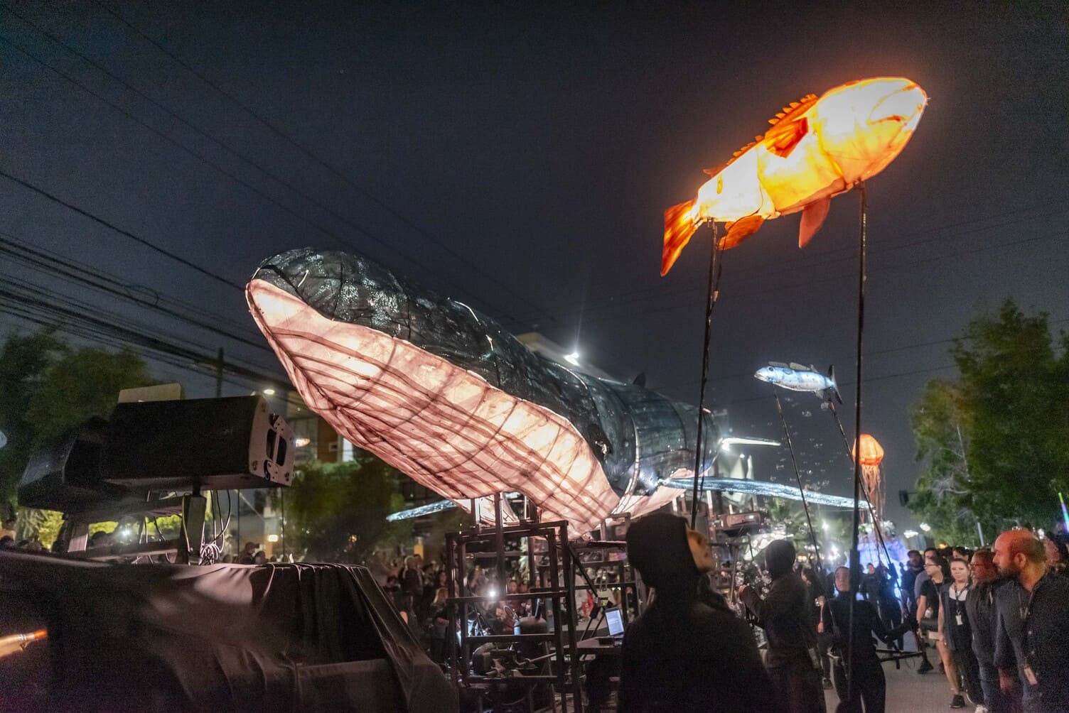 Con un montaje de gran formato y énfasis en el cuidado del medio ambiente, la obra “Océano, los peces inundan la calle” inauguró la noche del martes 13 de enero el Festival Internacional Teatro a Mil en Maipú.