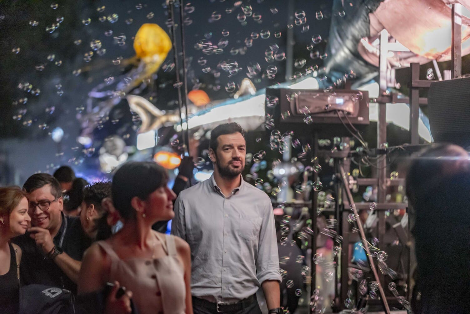 El espectáculo propone una experiencia visual que recrea un paisaje submarino en plena ciudad, invitando al público a imaginarse bajo el mar y reflexionar sobre la contaminación por plásticos y su impacto en los ecosistemas marinos.