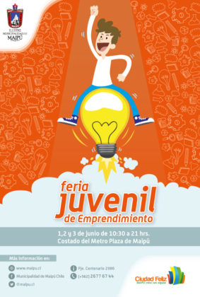 La convocatoria es para los días miércoles 1, jueves 2 y viernes 3 de junio, a la salida de la estación de Metro Plaza Maipú, entre las 10.30 y 21.00 horas. Una nueva versión de la Feria Joven que considera más de 30 stands y un escenario con música en vivo para cada una de las jornadas.