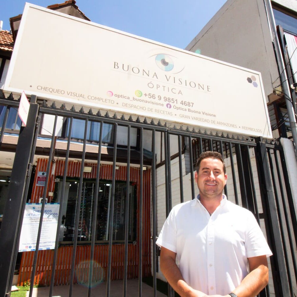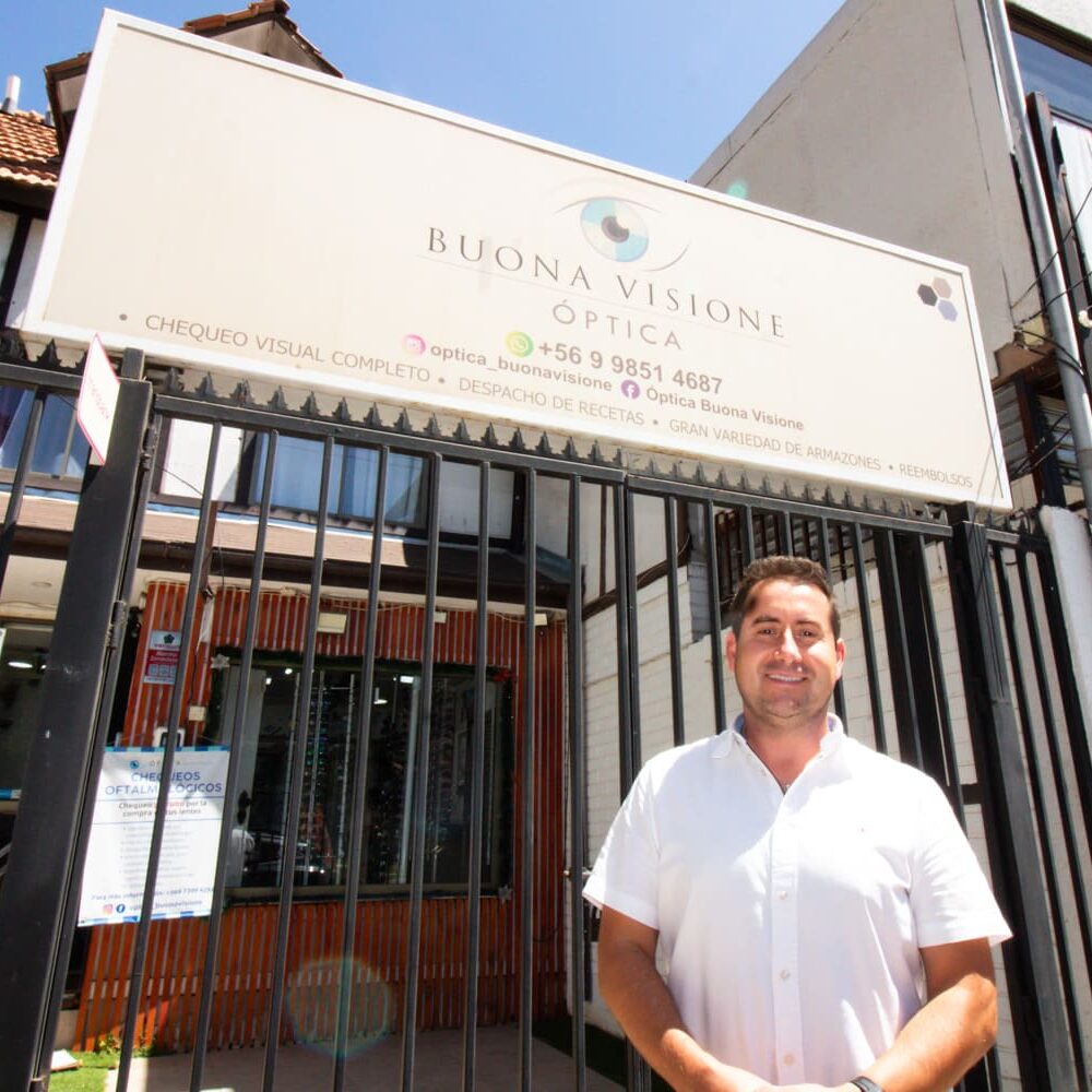 Nos encontramos con el fundador y dueño de la Óptica Buona Visione en la casa matriz de la empresa, que en 2026 cumple ocho años de trayectoria, con un local principal ubicado en Parque Central Poniente 425 en el barrio Ciudad Satélite de Maipú, y una sucursal en Av. Los Pajaritos 4500 (Metro Monte Tabor) al interior del supermercado Lider.