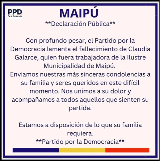 El PPD comunal en tanto, expresa: “Enviamos nuestras más sinceras condolencias a su familia y seres queridos en este difícil momento”