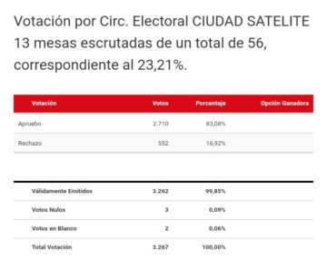21:50hrs. Ciudad Satélite. Datos de Servel revelan la tendencia que favorece a la opción Apruebo