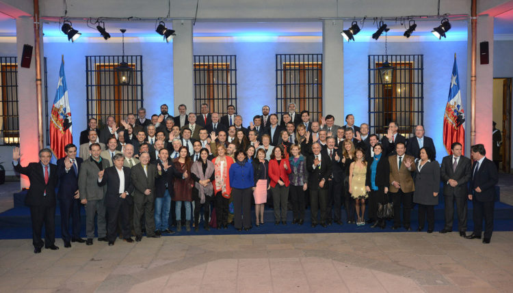 [Imagen: Michelle Bachelet junto a sus ministros y parlamentarios de la Nueva Mayoría | (CC)  Gobierno de Chile].