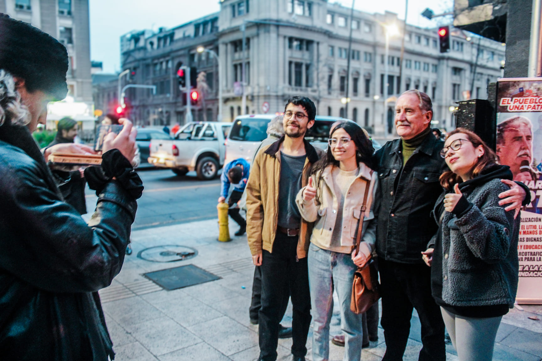 Comparte con entusiasmo las muestras de afecto de quienes pasan y se detienen en el lugar, para estrechar su mano y pedir una foto. Él acepta siempre con una sonrisa amable y una actitud cercana, sencilla. Está conforme con la respuesta de la gente, pero sabe que falta un poquito más.
