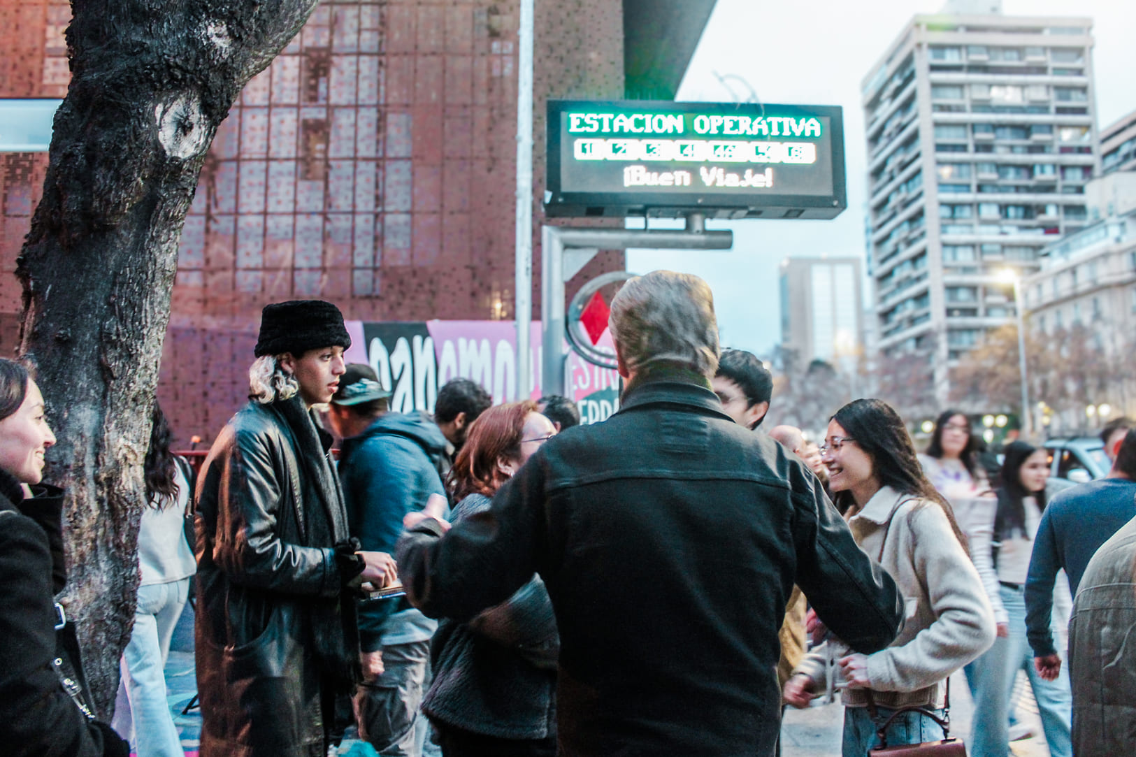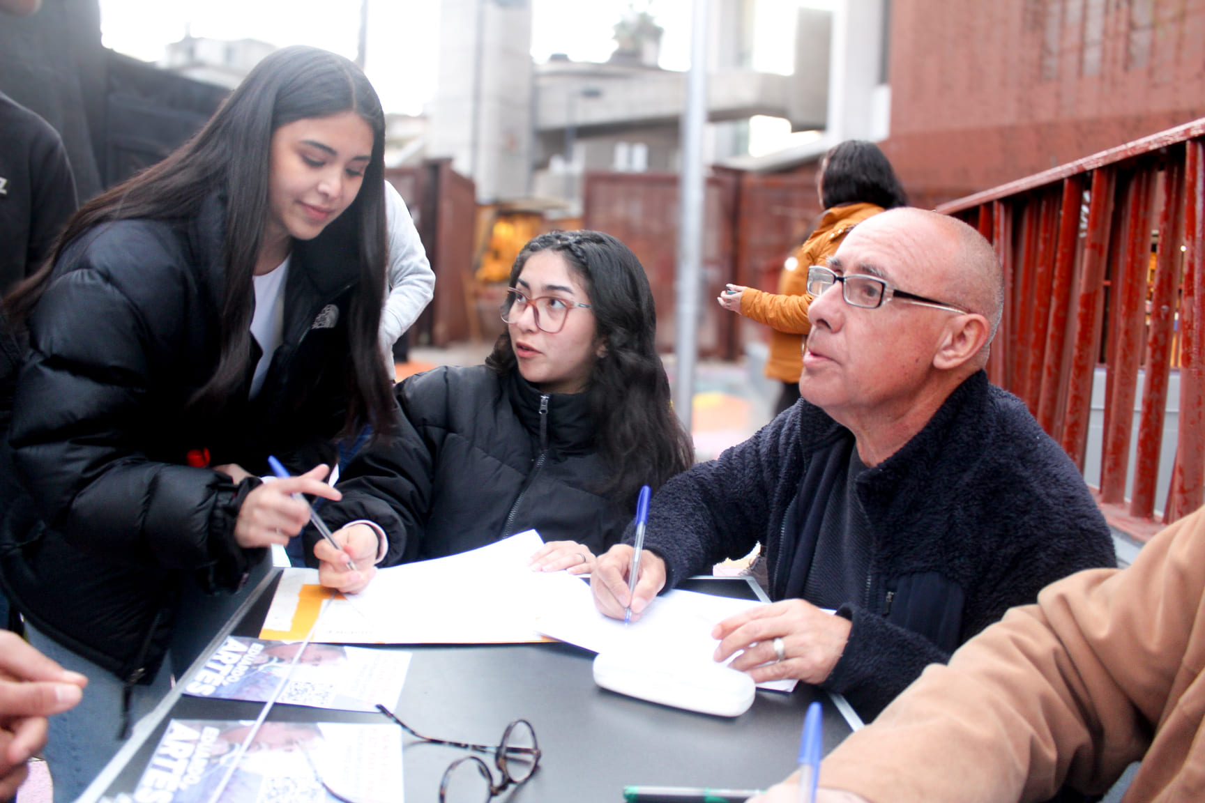 Encontramos a Eduardo Artés Brichetti, el profesor nacido en San Vicente de Tagua Tagua, militante del Partido Comunista Acción Proletaria (PCAP), en la Alameda -a un costado del Centro Gabriela Mistral (GAM)-, acompañado de un grupo de colaboradores que llenan aceleradamente las papeletas con las firmas de adherentes a la candidatura de Artés para las elecciones presidenciales del fin del presente año.