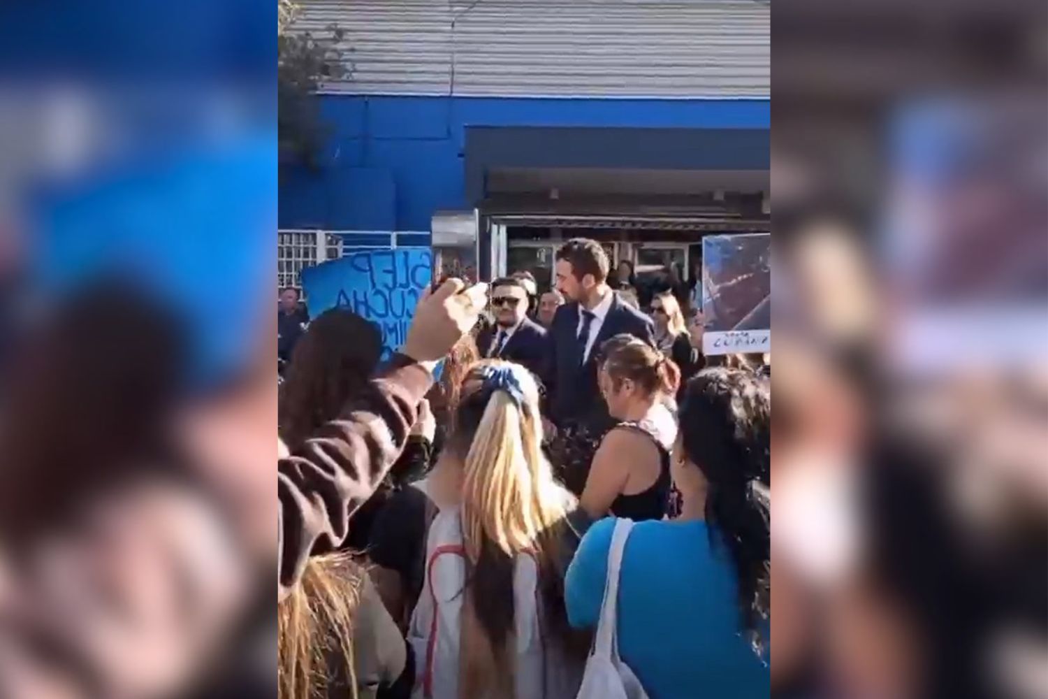 Posteriormente, padres y apoderados de la Escuela O’Higgins, apostados en la calle tras las rejas de cierre del Templo, golpeaban los fierros y hacían sonar instrumentos, mientras mostraban carteles y pancartas.