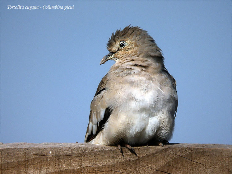 Tortolita cuyana: “Es una tortolita chica, que se ve comiendo en la tierra, son plomas”.