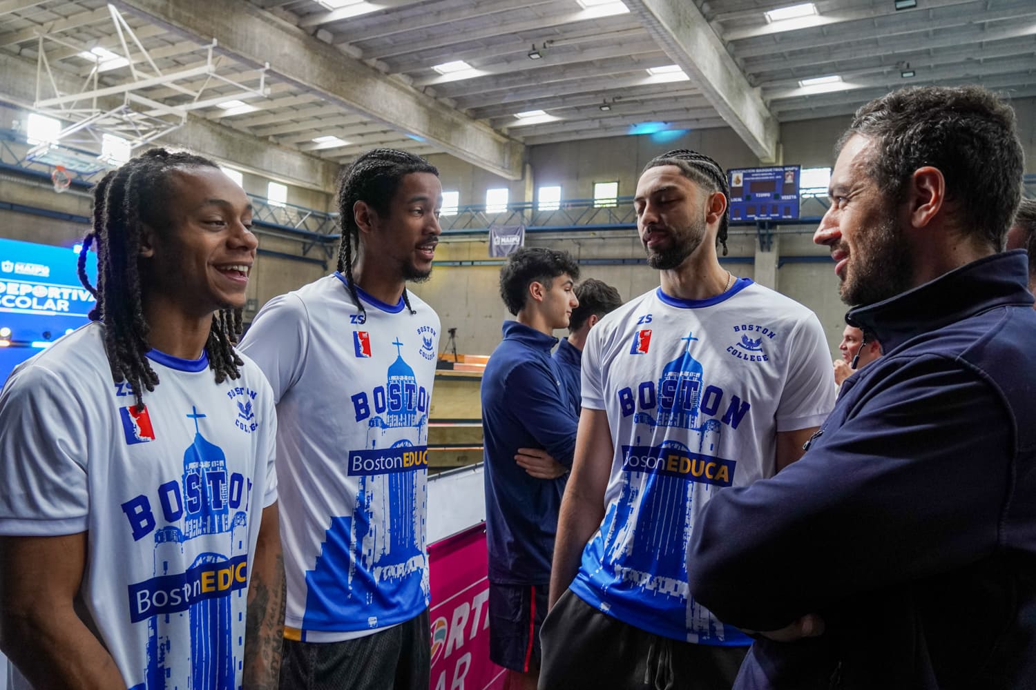 Uno de los momentos centrales de la jornada fue la presentación de la delegación del Boston College de Maipú, integrada por los basquetbolistas estadounidenses Adam Afifi, Andre Ball y Bradlee Huskell.