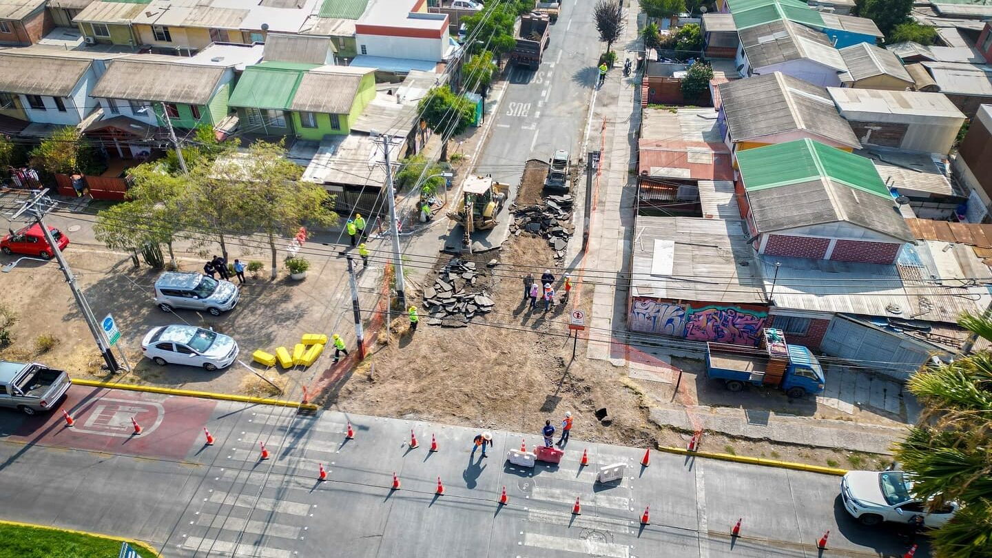 Los trabajos, que se desarrollan en La Galaxia, entre Nueva San Martín y Camino a Rinconada, forman parte de un plan de mejora vial con una inversión de $1.500 millones, provenientes del propio municipio de Maipú.