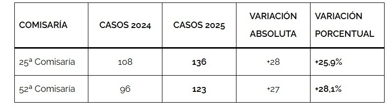 Robo en lugar habitado – Comparativo 2024 vs 2025 por Comisaría en Maipú