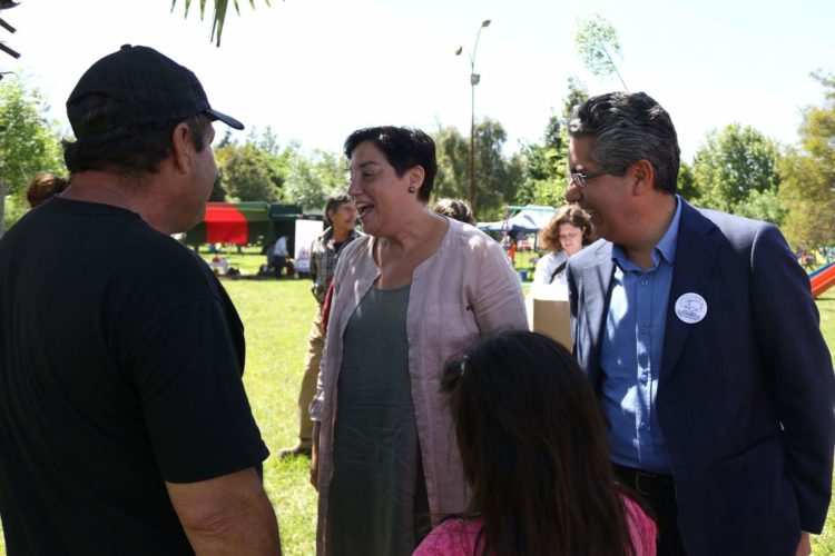 La candidata presidencial y el candidato a diputado pasearon por el parque entre saludos y conversaciones con los feriantes y demás ciudadanos, quienes los recibieron muy calurosamente.