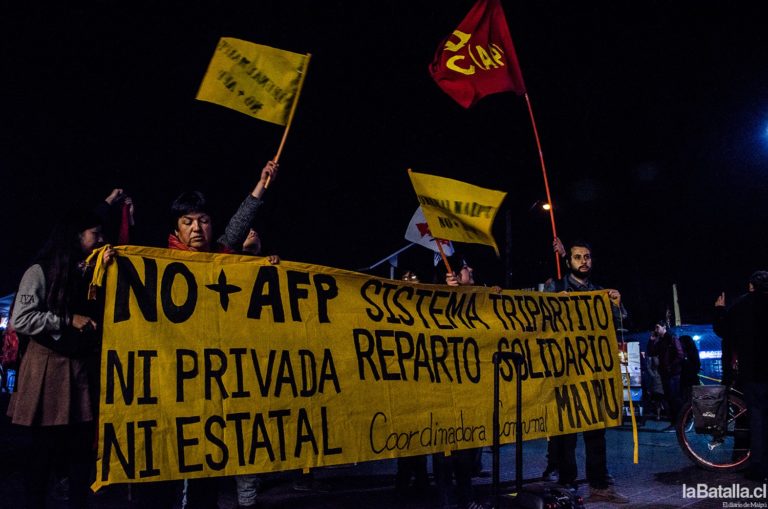 Unas cuarenta personas se manifestaron contra las AFP y a favor de un sistema de pensiones de reparto, solidario, tripartito y administrado por el Estado, la noche del lunes 24 de julio en Maipú. … [Leer más...]