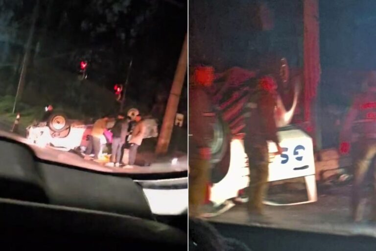 Auto del Gobierno de Santiago termina volcado en medio de persecución policial en Camino Lonquén