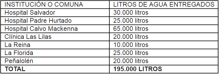 En relación al corte de suministro de agua, que afecta a 27 comunas de la Región Metropolitana, el Servicio Municipal de Agua Potable y Alcantarillado de Maipú, SMAPA, ha entregado ayuda a los siguientes municipios y hospitales con el llenado de camiones aljibes: