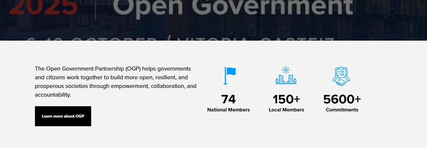 The Open Government Partnership (OGP) helps governments and citizens work together to build more open, resilient, and prosperous societies through empowerment, collaboration, and accountability.