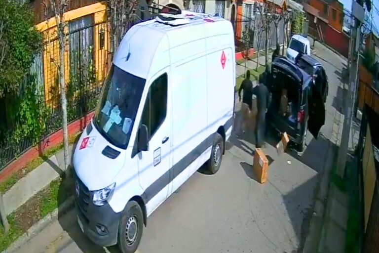 Un violento asalto fue captado esta noche por cámaras de seguridad en la intersección de Leonard Bernstein con Avenida Pajaritos, a metros del Metro Las Parcelas, en el barrio Longitudinal de la comuna de Maipú. El hecho ocurrió a las 20:24 horas y fue protagonizado por al menos cinco delincuentes, quienes atacaron a una pareja que caminaba por la vereda. En los … [Leer más...]