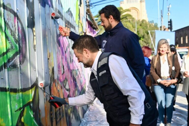 Claudio Orrego, Gobernador de Santiago, pinta muros en Avenida 5 de Abril en Maipú, junto a Tomás Vodanovic