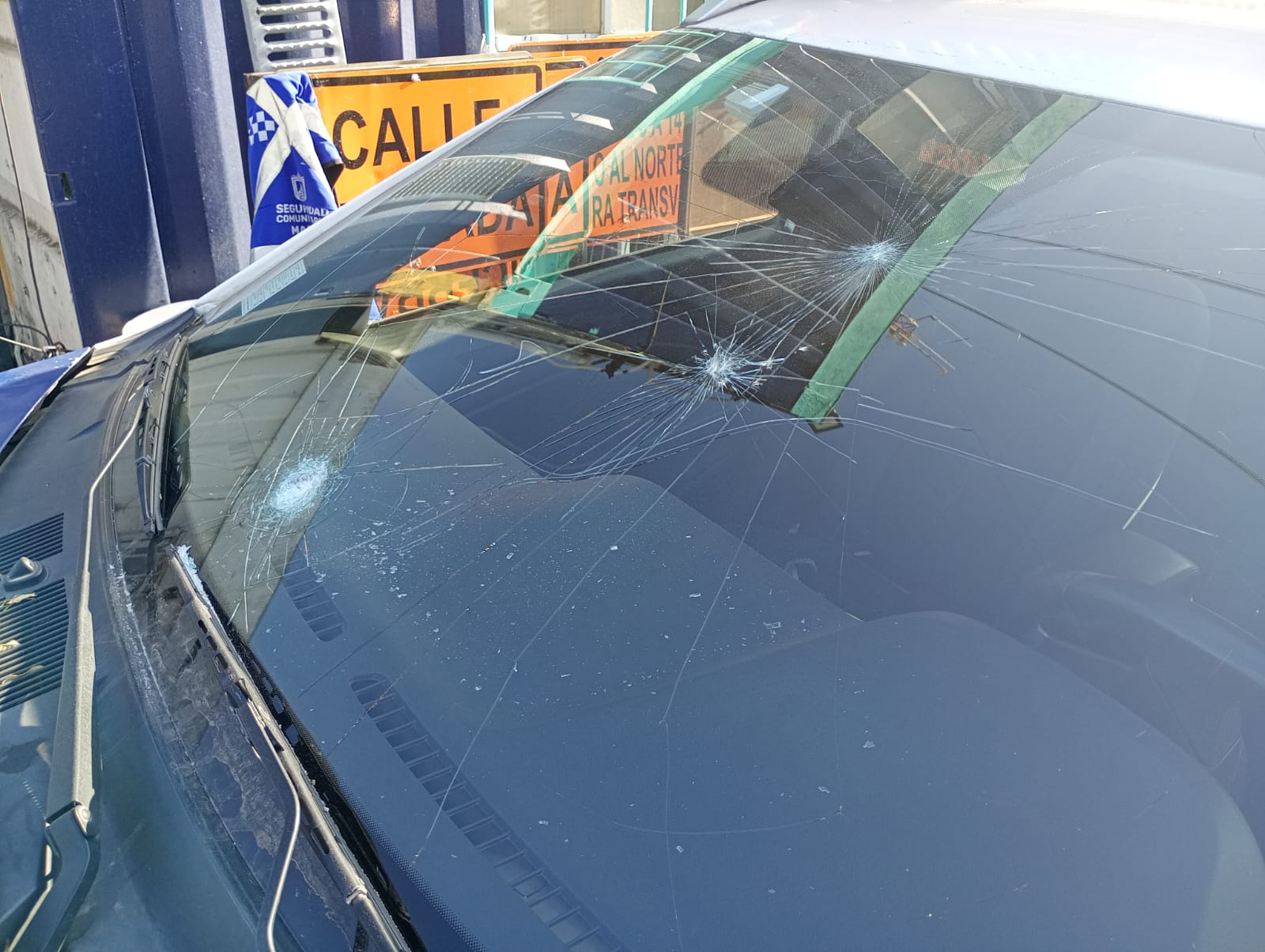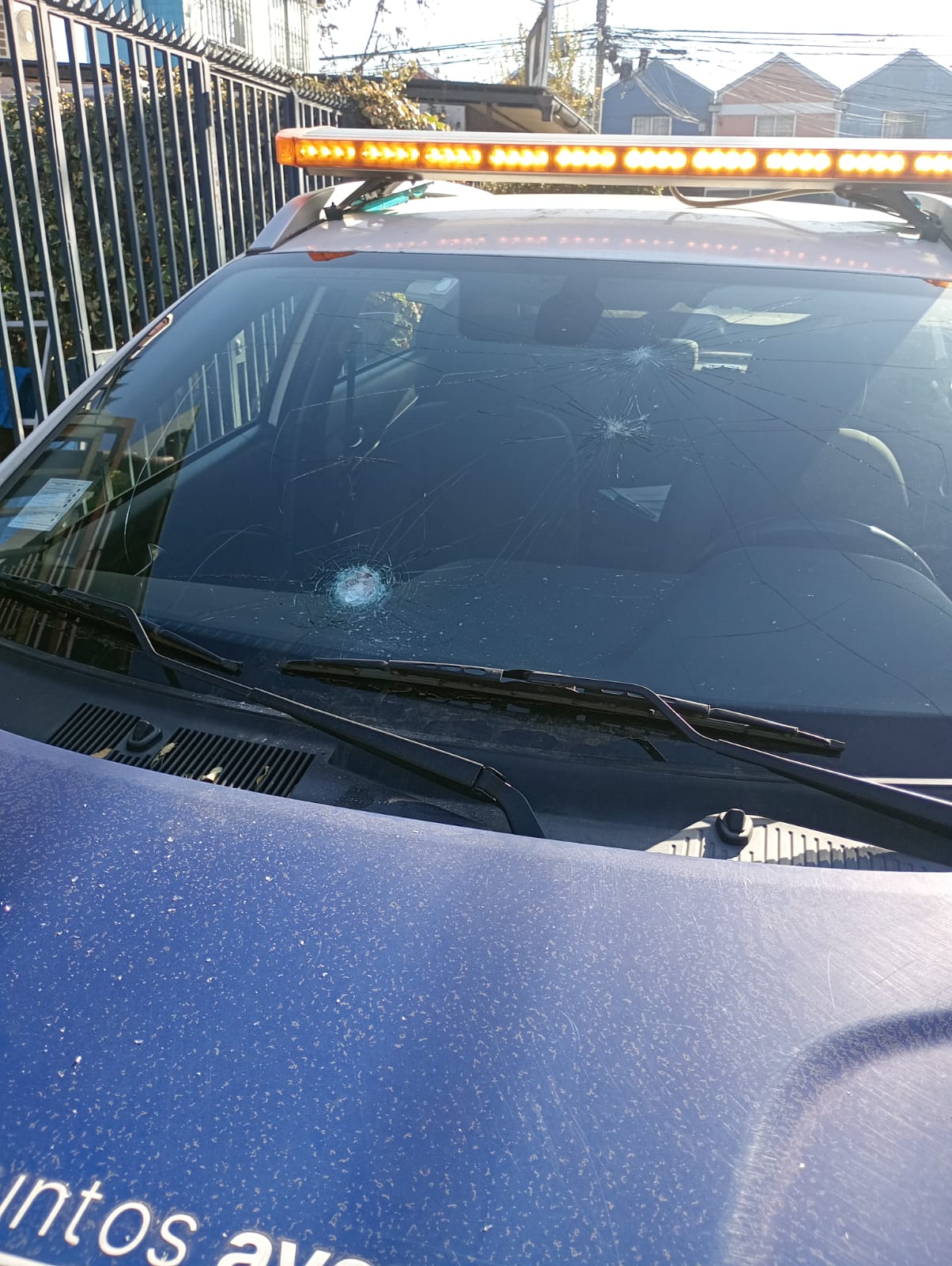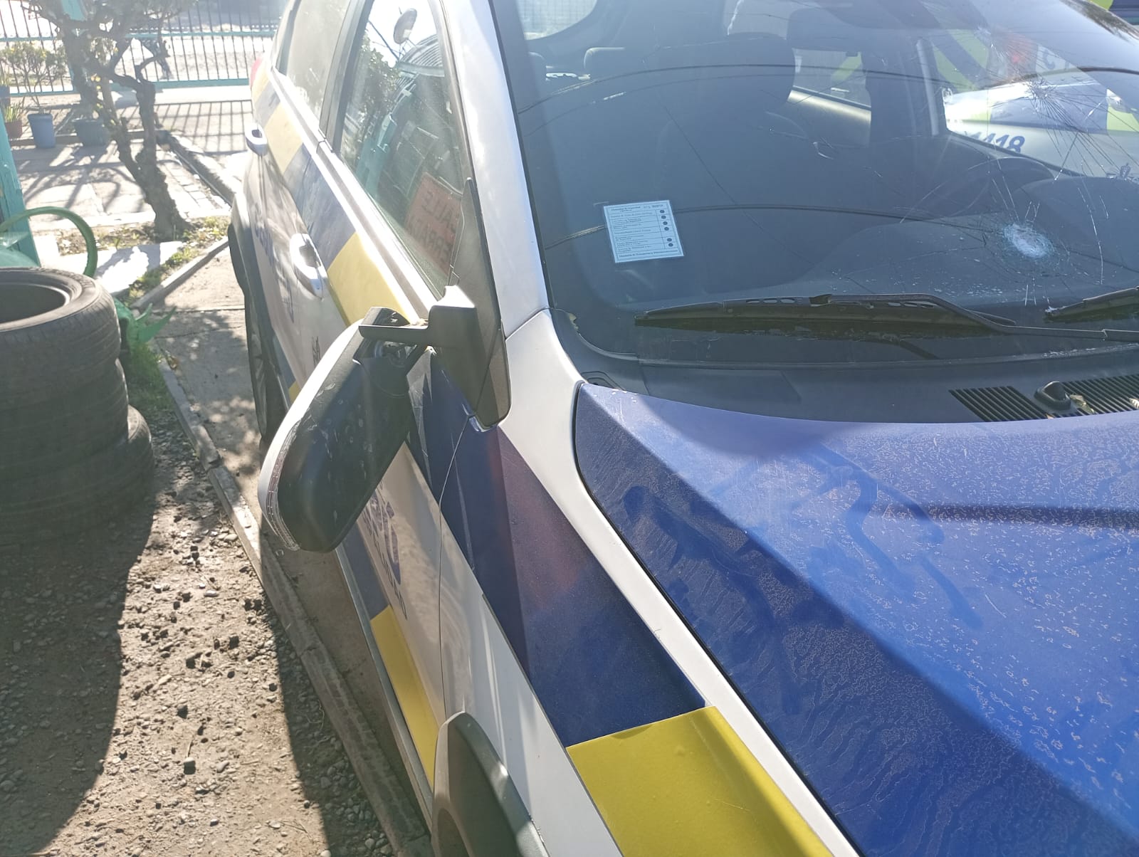 El móvil de Seguridad Comunitaria (1418) resultó con daños visibles en su estructura y parabrisas, producto del apedreo registrado en medio del procedimiento.