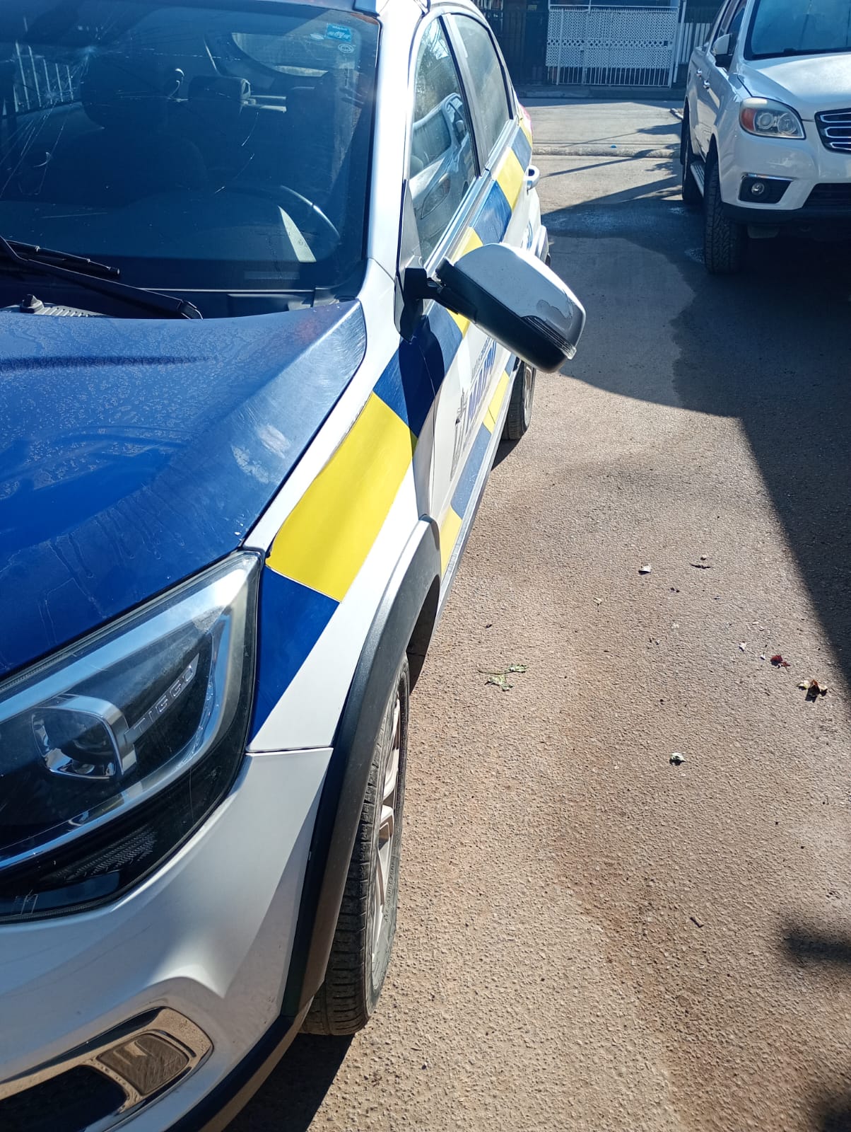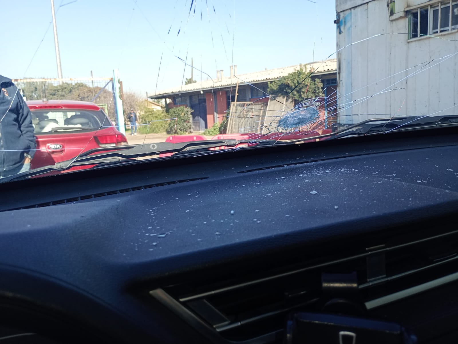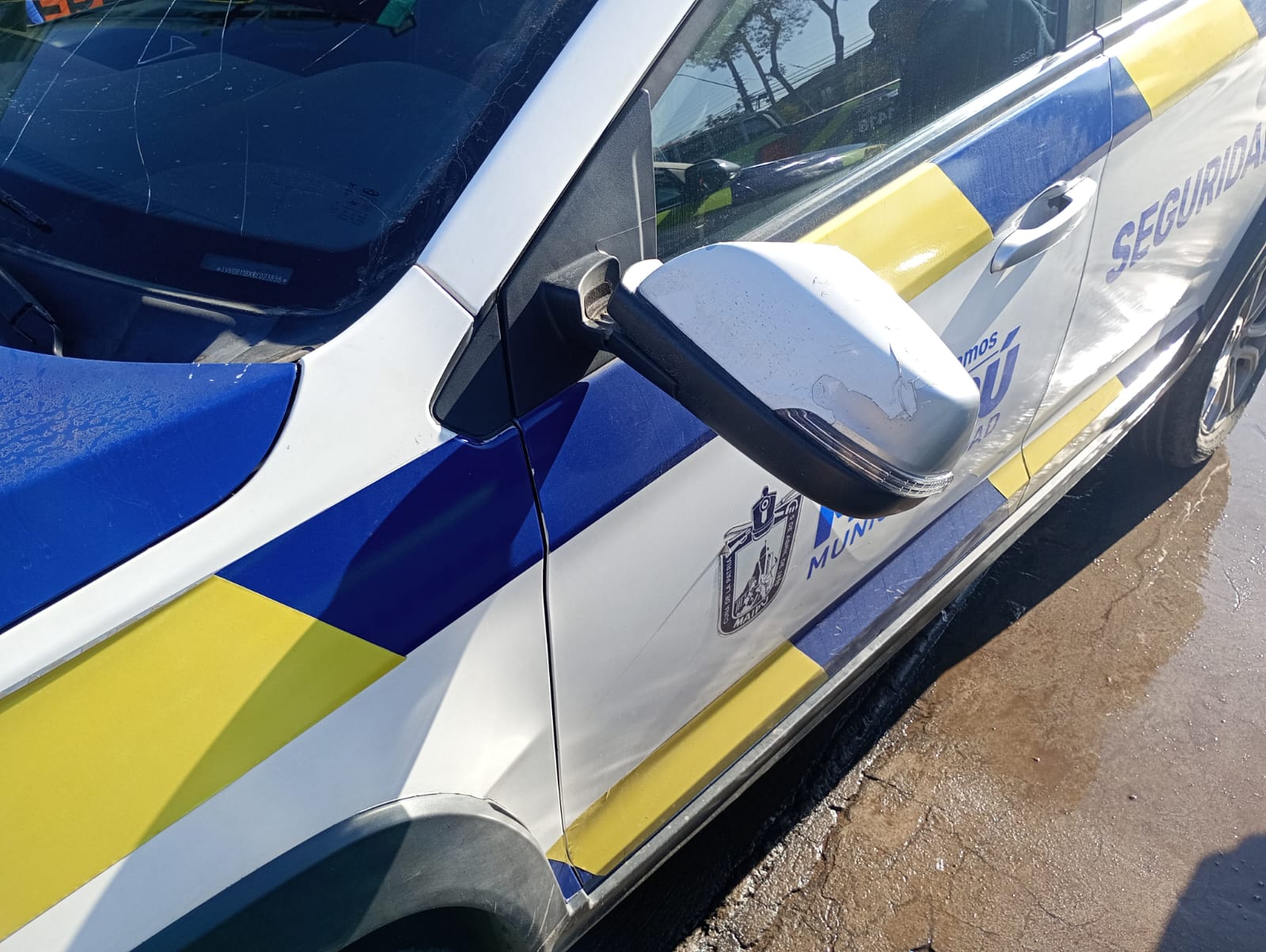 El móvil de Seguridad Comunitaria (1418) resultó con daños visibles en su estructura y parabrisas, producto del apedreo registrado en medio del procedimiento.