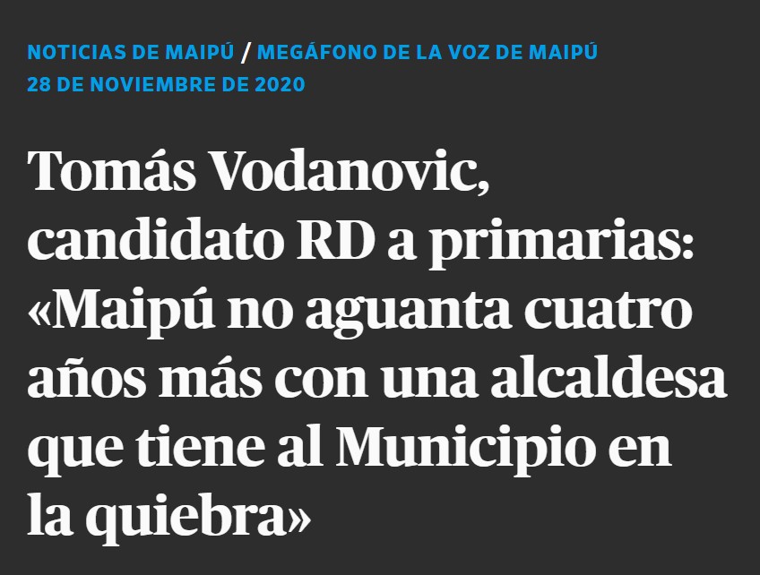 Se remonta a su etapa como candidato a la alcaldía de Maipú, cuando en el marco de su campaña por las primarias del Frente Amplio señaló en exclusiva al medio local La Voz de Maipú que “Maipú no aguanta cuatro años más con una alcaldesa que tiene el municipio en la quiebra” (publicado el 28 de noviembre de 2020), en referencia a la gestión de la entonces alcaldesa Cathy Barriga.