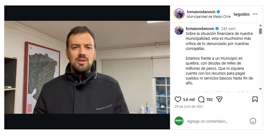 Casi tres años después, el 25 de abril de 2024, el propio Vodanovic informó un cambio en la situación financiera del municipio, señalando que: