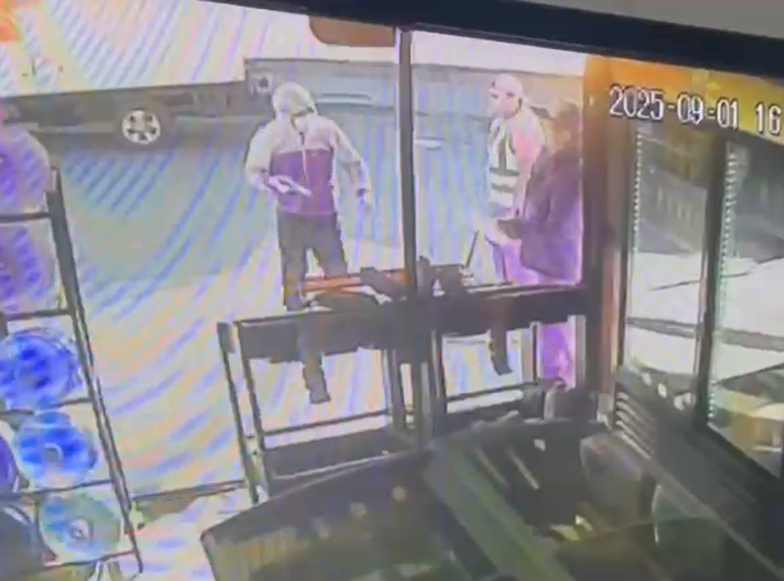 Las imágenes de una cámara de seguridad revelan que un camión tres cuartos de reparto PepsiCo estacionó para ingresar a un almacén. Fue entonces cuando el automóvil negro se acercó al lugar. En segundos, uno de los sujetos descendió con capucha y mascarilla, apuntando con un arma directamente al chofer.