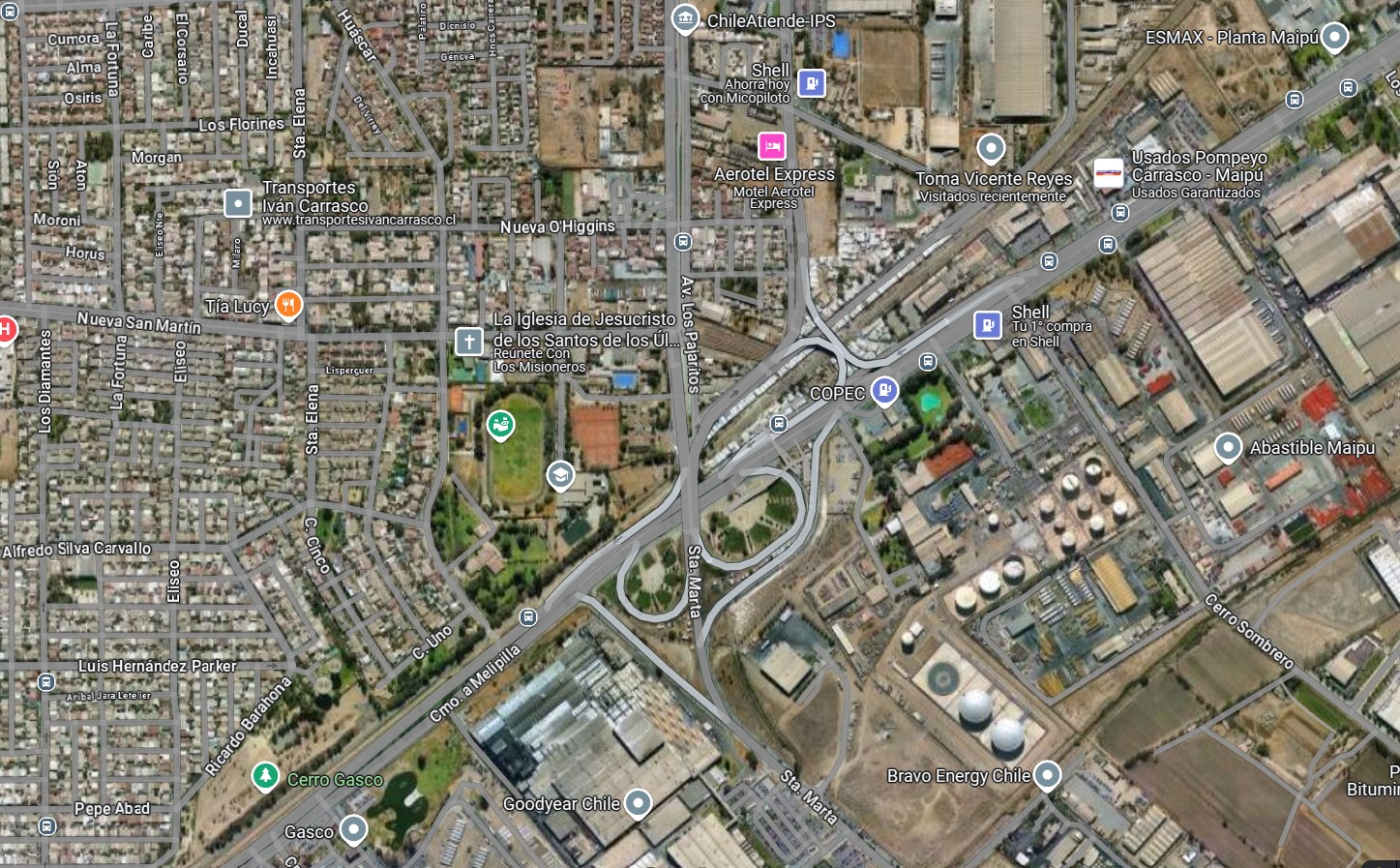 El lugar del suceso, en Camino A Melipilla a la altura de Pajaritos. Imagen: Google Maps.