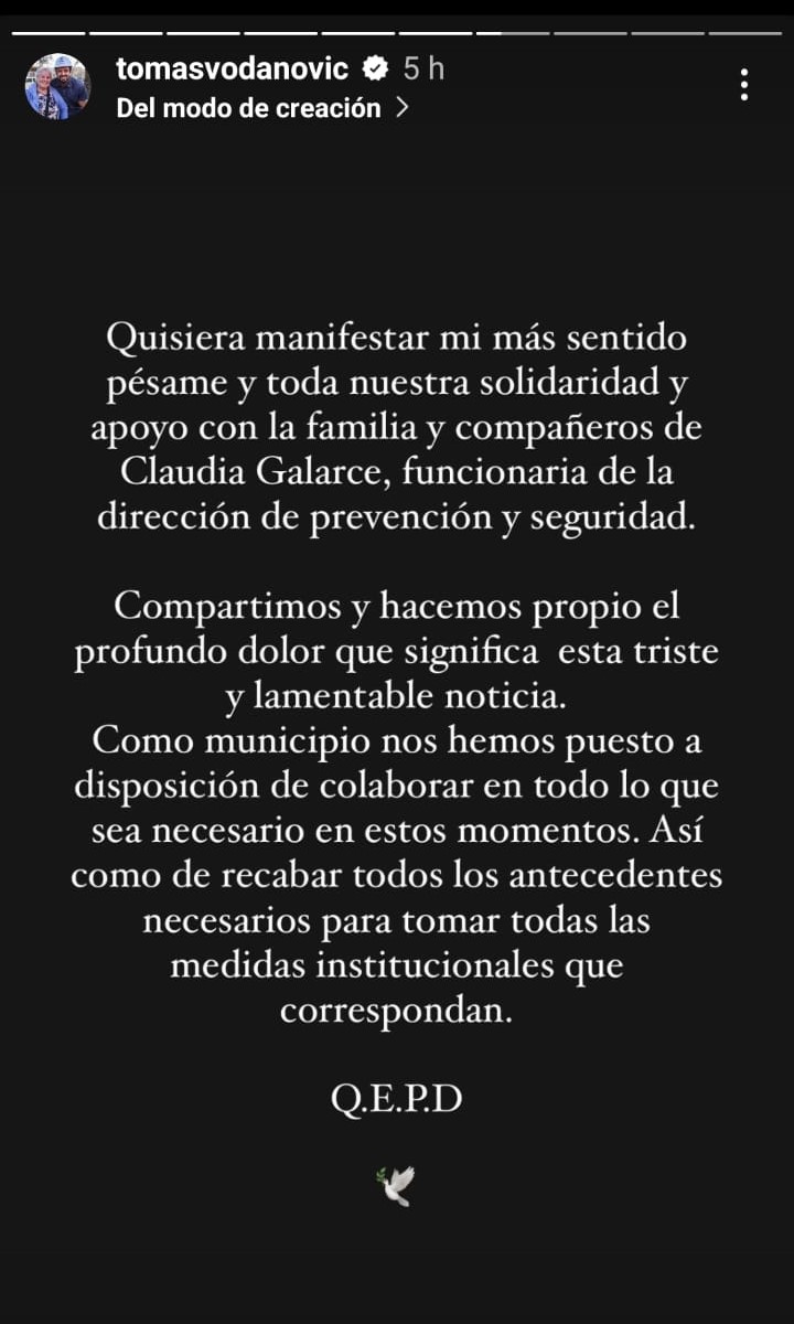Un rato más tarde recibimos de fuentes del municipio, una comunicación vía whatsapp, en la que el alcalde Vodanovic entrega un comunicado a través de sus redes sociales: