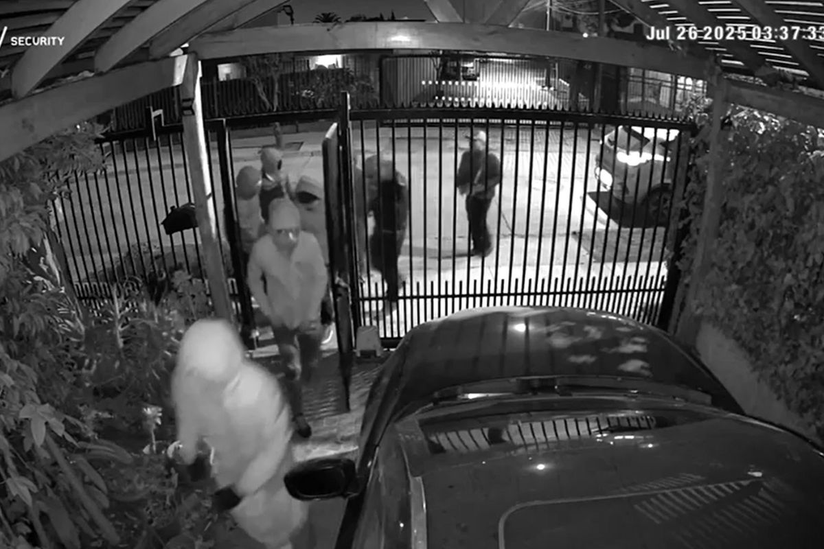 El hecho ocurrió pasadas las 03:30 horas y quedó registrado en un video de cámaras de seguridad, donde se observa cómo los individuos, tras romper la reja de acceso, ingresan en grupo al antejardín del inmueble e intentan violentar la puerta principal a patadas.