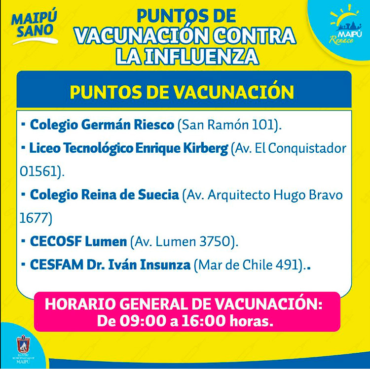 *Horario general de vacunación contra la influenza: De 09:00 a 16:00 horas.