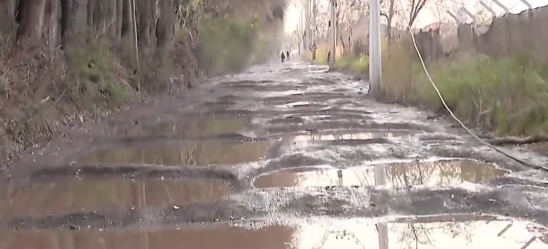 El estado del camino se agrava con la acumulación de agua debido al desborde de un canal de regadío cercano, lo que en invierno triplica los problemas de transitabilidad.