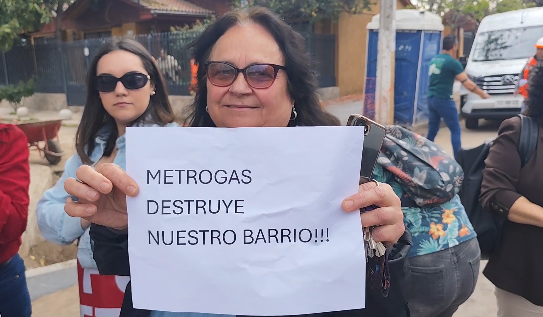 Con carteles en mano que rezaban “¡Fuera Metrogas!”, los residentes se congregaron en la intersección de Alto Jahuel con Docamavida para expresar su rechazo.