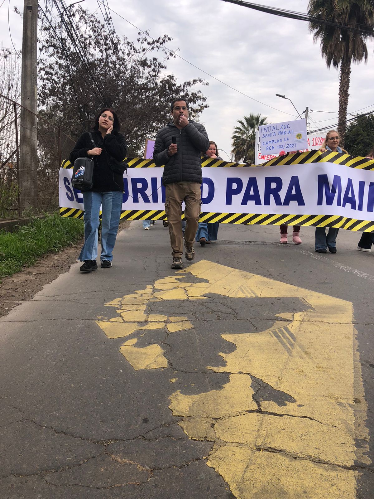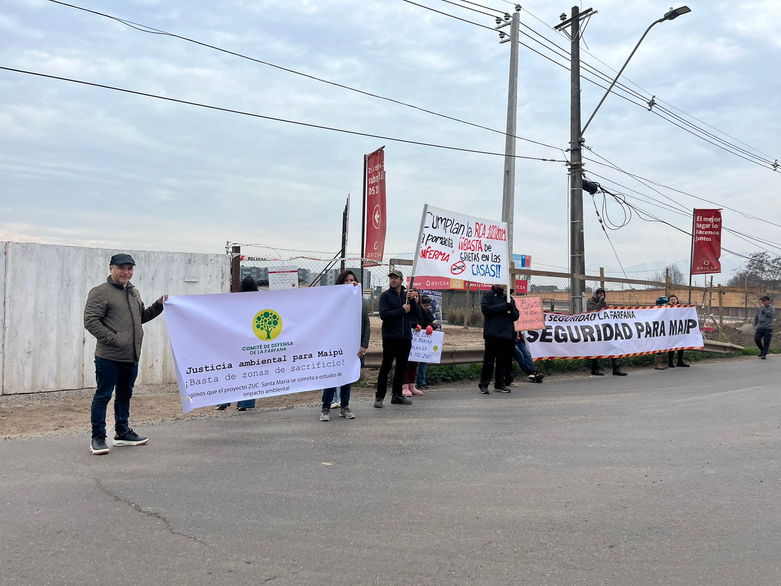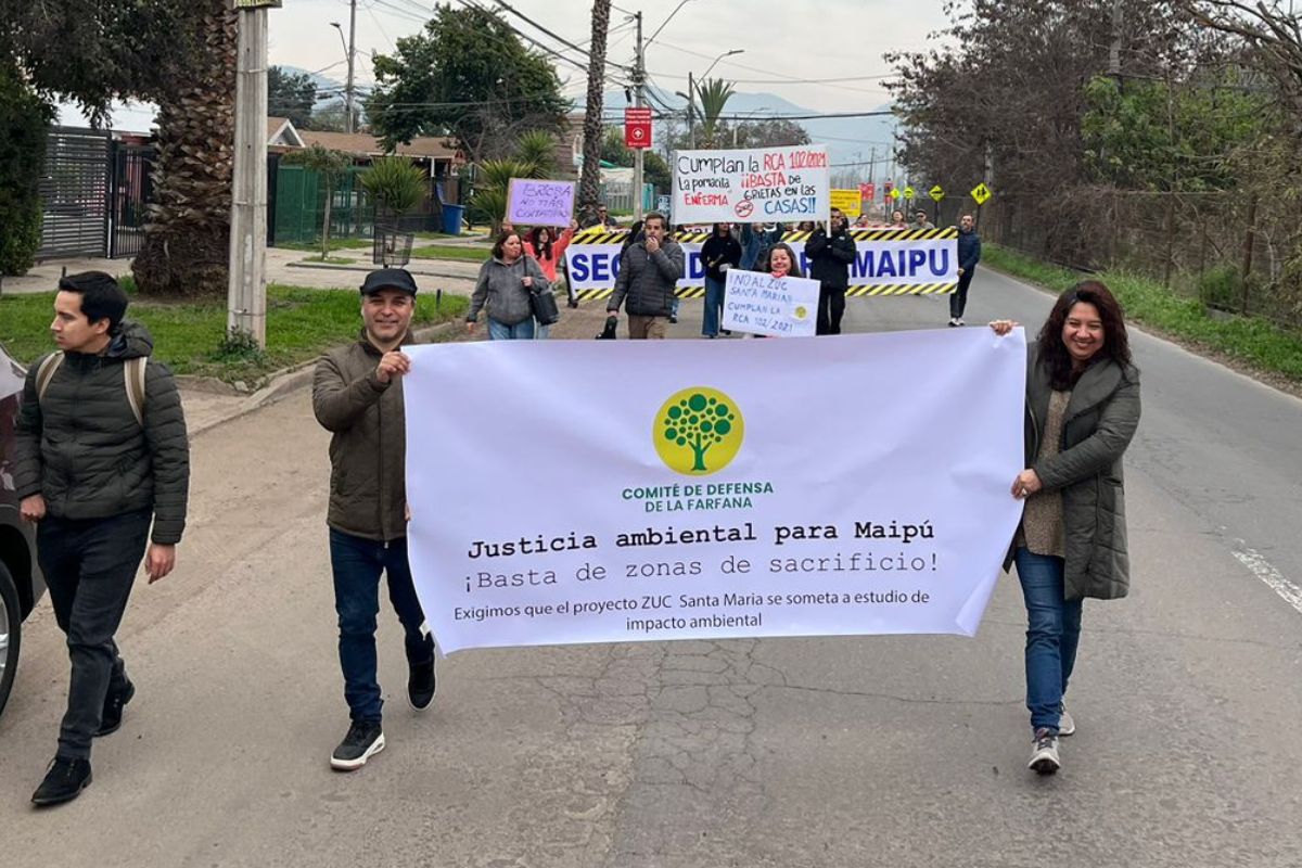 Medio centenar de vecinos y vecinas del sector de La Farfana se movilizaron este sábado en una marcha pacífica para denunciar los impactos negativos generados por el megaproyecto inmobiliario “ZUC Santa María de Maipú”.